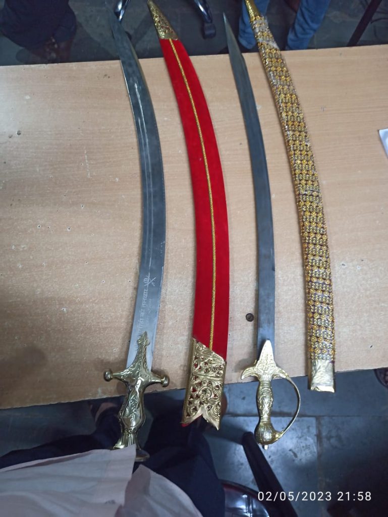 या बाबतची माहिती अशी की, दि. २ मे रोजी सहाय्यक पोलीस अधीक्षक पंकज कुमावत साहेब यांच्या मार्गदर्शनाखाली त्यांच्या पथकातील पोलीस जमादार बालाजी दराडे, बाबासाहेब बांगर, अनिल मंदे आणि विकास चोपणे हे अवैध धंद्यावर छापा घालण्यासाठी नांदुरघाट येथे गेले होते. तेथे गुप्त बातमीदार मार्फत पोलीस पथकाला अशी माहिती मिळाली की, नांदूरघाट येथे दोघे विनापरवाना बेकायदेशीररित्या शास्त्राची चोरटी विक्री करीत आहेत. त्या पैकी एकजण मच्छी बाजार येथे येणार आहे. ही माहिती मिळताच पोलीस पथकाने सदर माहिती सहाय्यक पोलीस अधीक्षक पंकज कुमावत यांना कळविली. पंकज कुमावत यांच्या आदेशाने मच्छी बाजारातून एकास ताब्यात घेतले. त्यावेळी त्याच्या ताब्यातून दोन तलवारी ज्याची किमत ६ हजार ५०० रु. आहेत त्या जप्त केल्या.
