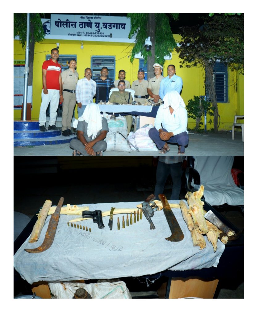 आरोपीना अधिक विश्वासात घेऊन आणखी चंदनाचा माल कोठे ठेवला आहे? असे विचारले असतात त्यांनी सांगितले की, होळ गावातील होळ ते केज जाणाऱ्या रोड वरील जिनिंग जवळील त्यांचे मालकीचे जिममध्ये ठेवला आहे. असे सांगितले. होळ येथील जिममध्ये आरोपीसह जाऊन जिमची पाहणी केली असता जिममध्ये तयार चदनाचा गाभा, दोन लोखंडी, एक रामपुरी चाकू, एक गावठी कट्टा, जिवंत ७ काडतूस, एक गावठी पिस्टल, ८ जिवंत काडतूसे असे एकूण २ लाख ८४ हजार ४०० रु. मुद्देमाल मिळून आला.