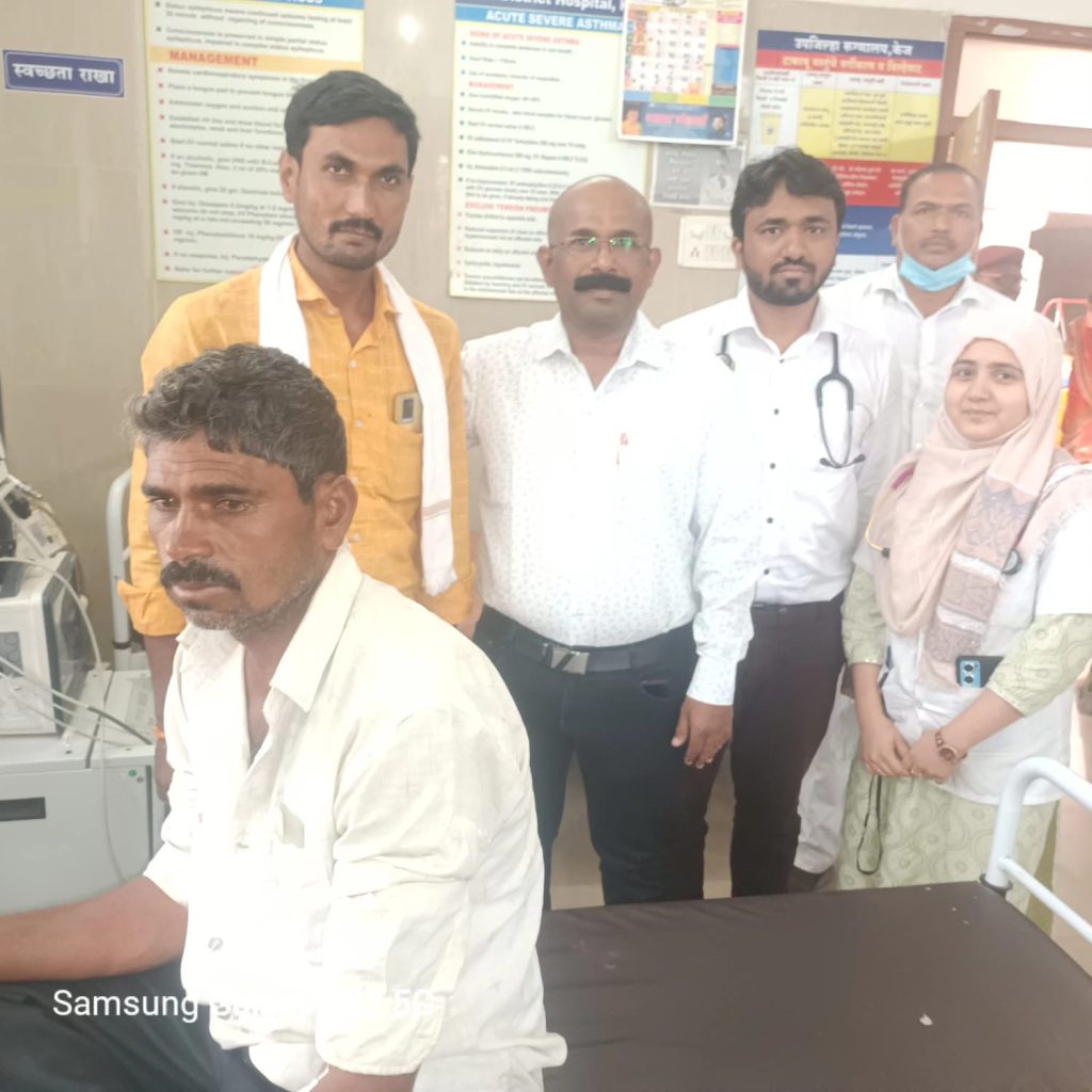 दि.३० रोजी सकाळी नेहमीच्या सवयीप्रमाणे कळंब तालुक्यातील भोगजी गावातील शेतकरी पंढरीनाथ कोंडीबा आडसुळ वय ४५ वर्ष हे आपल्या शेतातील जनावरांना भुस्कट टाकीत असतानां आचानक त्यांच्या हाताला क्रोबा जातीच्या सापाने दंश केला त्यांनी न घाबरता आरडा ओरडा करून आसपासचे माणसे जमविले व प्रथम त्या सापला मारले व तो साप सोबत घेऊन तात्काळ उपचारासाठी कळंब या ठिकाणी डिकले हॉस्पीटल येथे ७ वाजाता दाखल केले व तेथील डॉ डिकले यांना प्रथम उपचार करून अंबाजोगाई येथे रेफर केले पंरतू आडसुळ यांचे चुलत भाऊ बालाजी आडसुळ यांनी माळेगांव ते लोखंडी रस्ता खराब असल्यामुळे केज मार्गे ते अंबाजोगाई कडे निघाले पण केज मधुन जात असताना त्यांचे सलाईन संपले व त्यांनी थेट सकाळी ८ वाजता केज उपजिल्हा रुग्णालय गाठले त्या वेळेस तेथे हजर असलेले डॉक्टर सुरज कोठावळे , अयेशा शेख , या