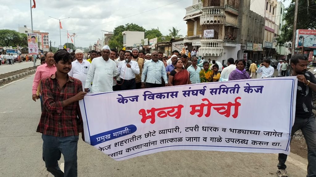 केज मध्ये छोट्या व्यावसायिकांचा “आम्हाला जागा द्या” म्हणून मोर्चा