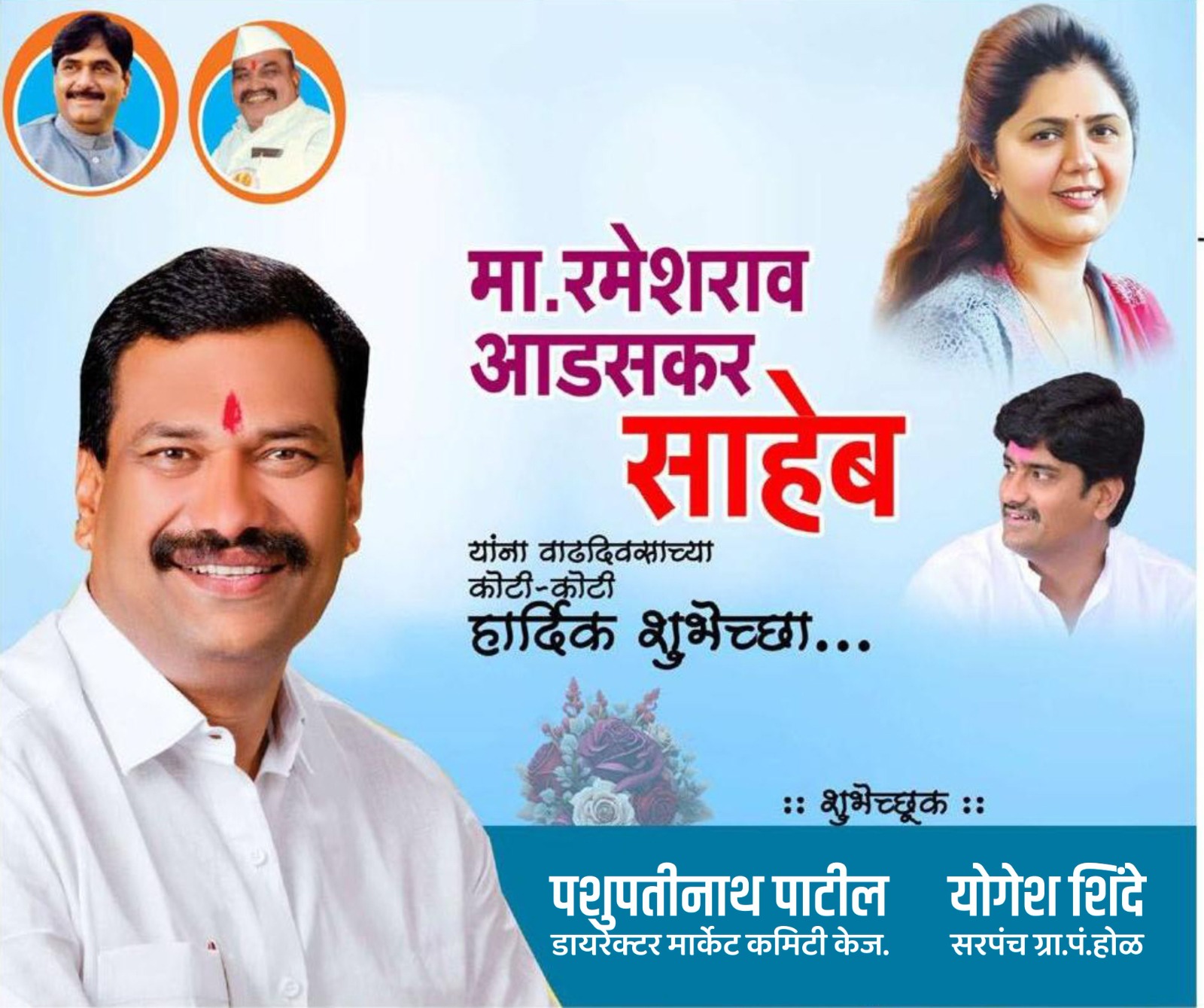 आडसकर म्हटले की, हबाडा याची आठवण होते. माजी आमदार बाबुरावजी आडसकर यांनी जिल्ह्याच्या राजकारणात आपले वेगळे अस्तित्व निर्माण केले. यामुळे आडसकरांचे नाव घेतल्याशिवाय जिल्ह्याच्या राजकारणाची चर्चा पुर्ण होऊच शकत नाही. तोच वारसा रमेश आडसकर चालविला आहे. त्यांना बालपणापासून राजकारणाचे बाळकडू वडील बाबुरावजी आडसकर यांच्या माध्यमातून मिळाले आहेत. परंतु त्यांची प्रत्यक्ष राजकारणात आसरडोह जिल्हा परिषद गटातून निवडणूक लढवून जिंकली आणि सक्रिय झाले. त्यावेळी ते सदस्य न रहाता राजकीय चाणाक्ष बुद्धीने जिल्हा परिषदेचे उपाध्यक्ष झाले. या संधीचे सोने करत त्यांनी धारुर, केज तालुक्यात अनेक विकासाची कामे केली. यातून आपल्यातील विकासाची दृष्टी आणि पदाची ओळख निर्माण केली. यानंतर ते दोन ट्रम उपाध्यक्ष,एकवेळा त्यांच्या पत्नी अर्चना आडसकर या उपाध्यक्ष राहिल्या तर सहकारी भारत पिंगळे यांच्या पत्नी शोभा पिंगळे यांना जिल्हा परिषद अध्यक्ष पदाची संधी उपलब्ध करून दिली. लोकसभेची निवडणूक त्यांनी लढवली तर अनेक वर्षे मा.आ. बाबुरावजी आडसकर यांचे वर्चस्व असलेला अंबा साखर कारखाना पुन्हा ताब्यात घेतला अन् तो चालू करुन कामगार आणि शेतकऱ्यांना दिलासा मिळवून दिला. हे सर्व शक्य झाले ती केवळ त्यांच्यातील सामान्य माणसाच्या प्रश्नांची सोडवणूक करण्यासाठी केलेल्या सततच्या प्रयत्नांमुळे. तर माजलगाव विधानसभा मतदारसंघाची निवडणूक त्यांनी लढवली समोरील प्रकाश सोळंके हे मातब्बर उमेदवार असतानाही अल्प मतांनी पराभव झाला. परंतु या पराभवामुळे ते खचून न जाता आणखी जोमाने कामाला लागले असून, साडेचार वर्ष झाले ते माजलगावात तळ ठोकून असून, सामान्य माणसाच्या सुखदुःखात सामील होत आहेत. याच स्वभावामुळे रमेश आडसकर जातील तिथे लोकांची गर्दी जमल्याची दिसून येते. अशा या जनसामान्यांसाठी काम करणाऱ्या नेत्याचा आज वाढदिवस आहे. त्यानिमित्ताने त्यांना वाढदिवसाच्या खूप खूप शुभेच्छा.