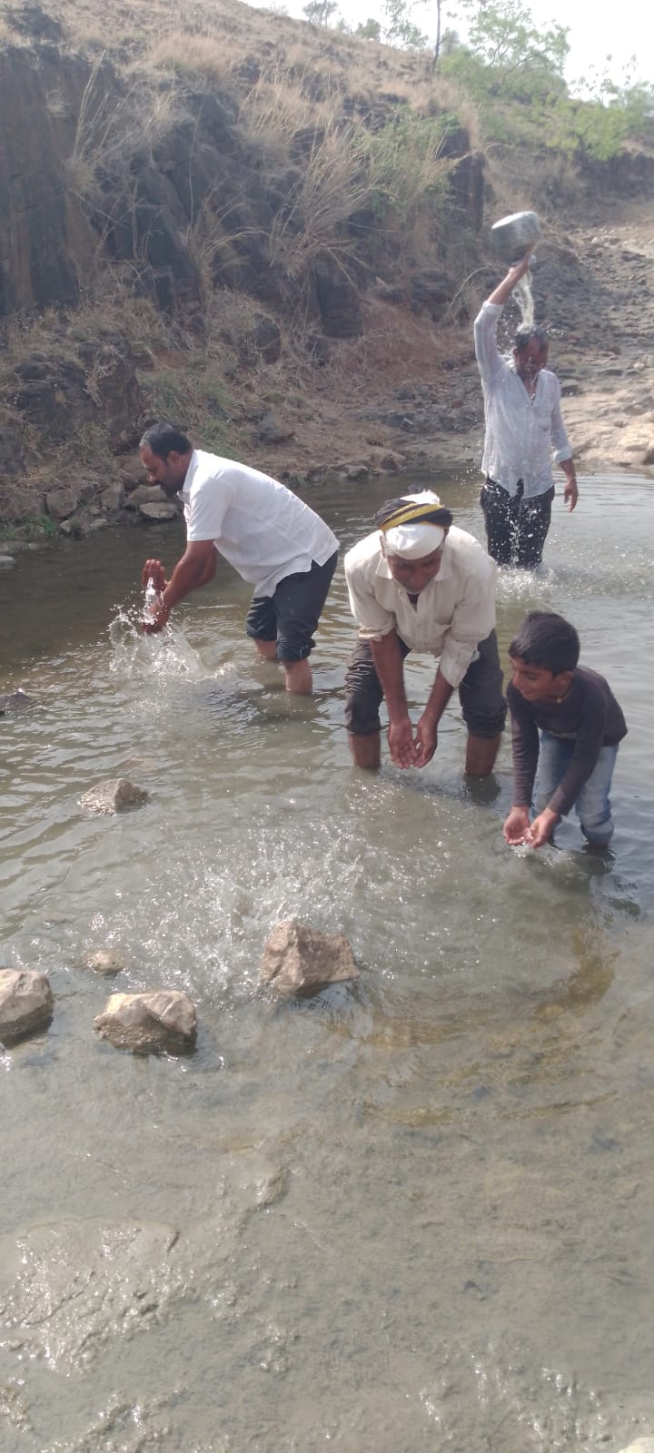 नेकनूरच्या उत्तरेला पाच किलोमीटरवर डोंगराच्या माथ्यावर वसलेल्या बीड तालुक्यातील आनंदवाडी येथील दोन दिवसाला येणाऱ्या टँकरची वाट बघणाऱ्या ग्रामस्थांना शनिवारी सकाळी सुखद धक्का बसला गावाच्या बाजूला असलेल्या उंबराचा वडा या ठिकाणी कोरड्या ओढ्यात गुडघाभर पाणी साचलेले दिसले विशेषतः ना पाऊस,ना कोणाचे बोअरवेल झाले नसताना ओढ्याला पाणी कुठून आले हे पाहण्यासाठी ग्रामस्थांनी या ठिकाणी धाव घेत पाण्यात स्वतःला भिजवून आनंद व्यक्त केला. गावातील सगळे बोअरवेल आटले ,विहिरीनी तळ गाठला , पाण्याच्या वाढीव टँकरसाठी ग्रामस्थ सोमवारी जिल्हाधिकाऱ्याकडे जाणार अशी परिस्थिती असताना बीड तालुक्यातील आनंदवाडी च्या ग्रामस्थांना शनिवारी सुखद धक्का बसला गावापासून एक किलोमीटर असणाऱ्या उंबराच्या ओड्याला पाणी आल्याचे चित्र काही ग्रामस्थांना दिसले आणि बघता बघता गावातील सर्वच ग्रामस्थांनी या ठिकाणी धाव घेत ओढ्याला अचानक आलेले पाणी पाहून अचंबित झाले.या ओढ्यात गुडघाभर साचले तो वाहू लागले .एक ठिकाणी पाण्याचा उकळा दिसत असून अचानक नेमके पाणी कुठून आले याबाबत ग्रामस्थात कमालीचे कुतुहल आहे.——————–—— गावाच्या बाजूला उंबराचा ओढा असून तो मागच्या चार महिन्यापासून कोरडा आहे .शनिवारी सकाळी अचानकपणे या ओढ्याला पाणी दिसले यामुळे सर्वच ग्रामस्थ हे पहायला उपस्थित होते. गावात कुठेच पाणी नाही दोन दिवसाला टँकर येत असून यामुळे पाण्याची टंचाई कायम असल्याने वाढीव टँकरची मागणी करण्यासाठी आम्ही सोमवारी जिल्हाधिकाऱ्याकडे जाणार होतो मात्र ओढ्यात अचानक पाणी कुठून आले याचा प्रशासनाने शोध घेत हे पाणी उपलब्ध होते का हे तपासावे —