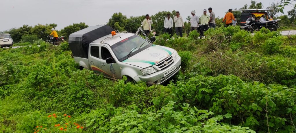 वनविभागाची गाडी रस्त्याच्या बाजूला खड्ड्यात गेली